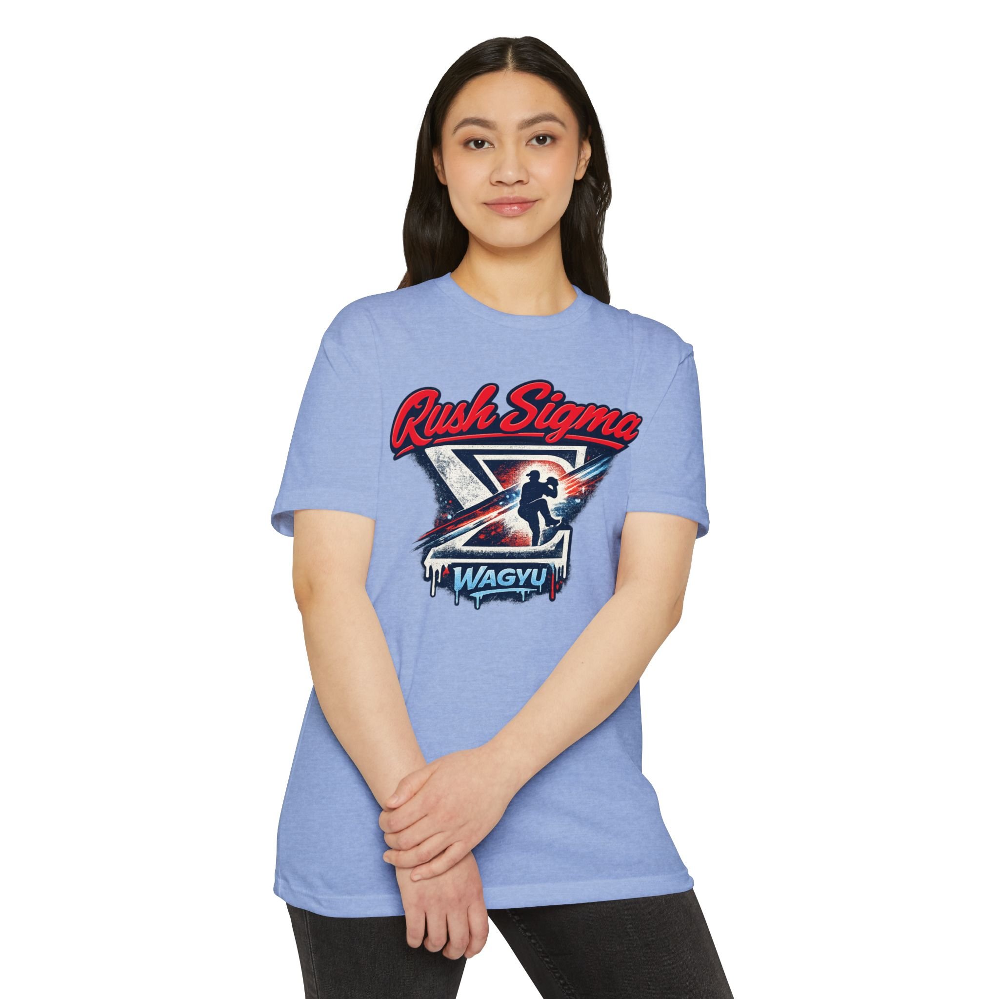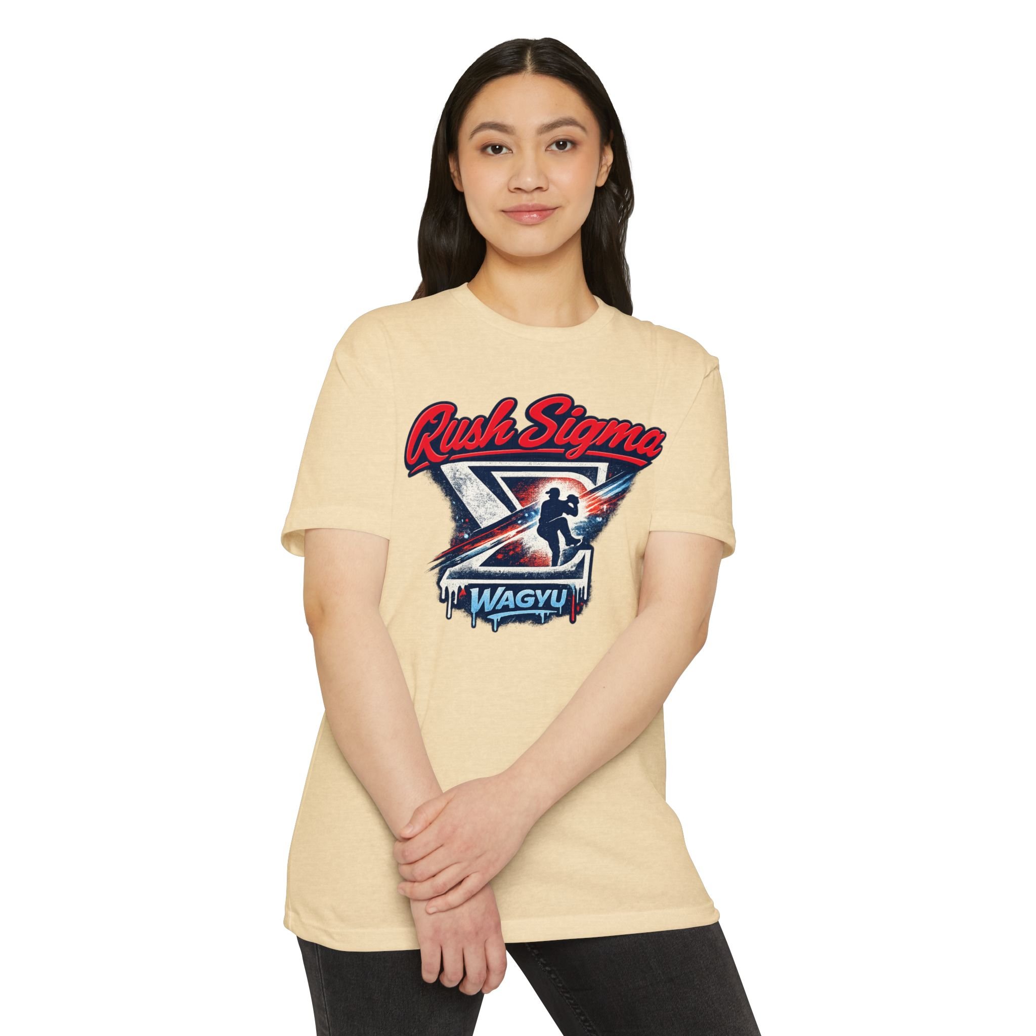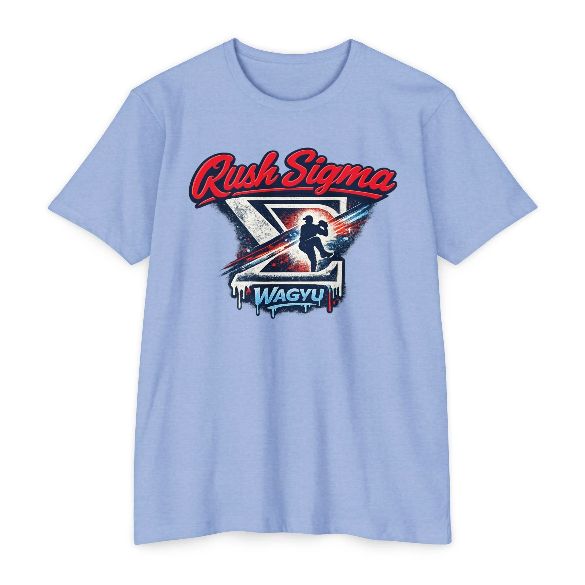 The Wagyu x Rush Sigma Tee is an ode to where it all started — Mississippi. Built in the colors and energy of his home state, the design carries that Southern edge into every detail. It’s power without flash, confidence without noise. Smooth, repeatable, and then all at once — impact.